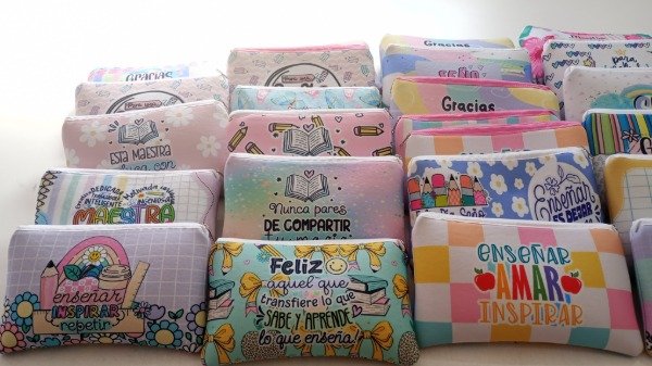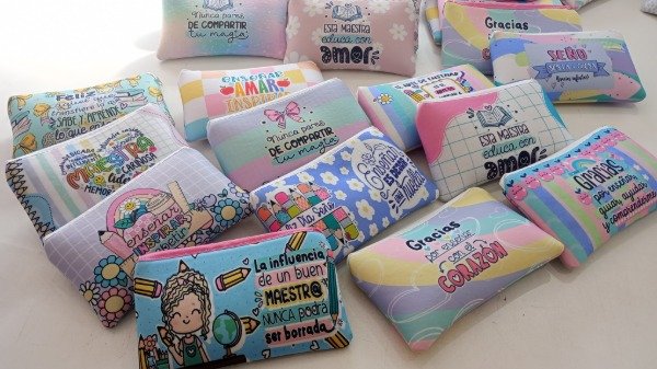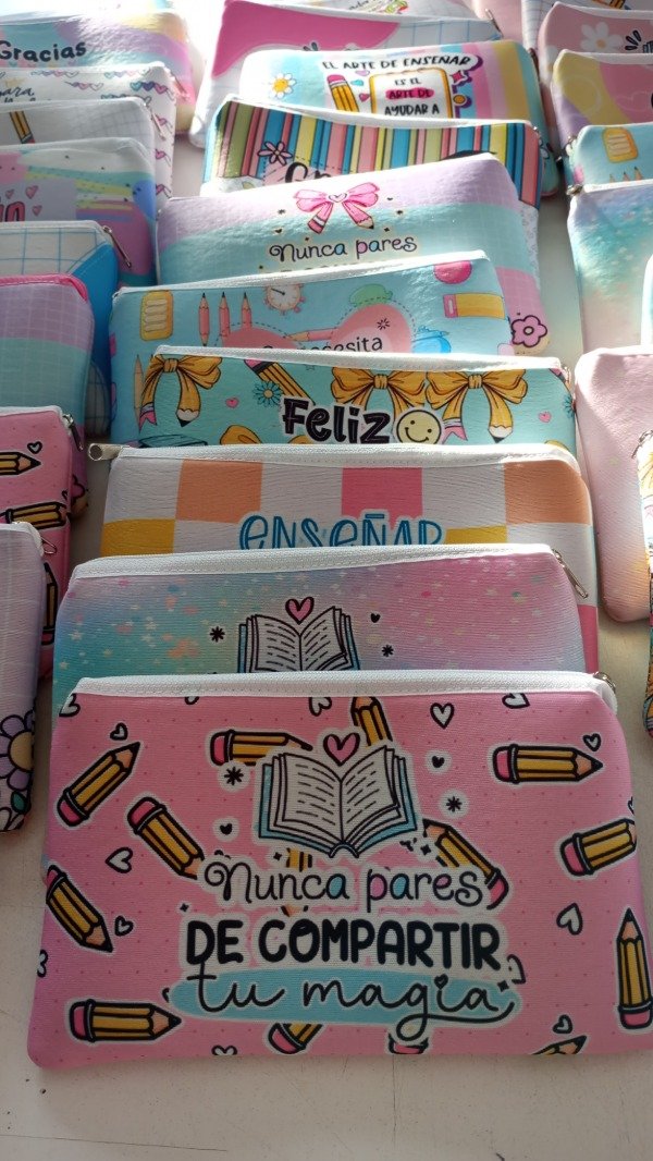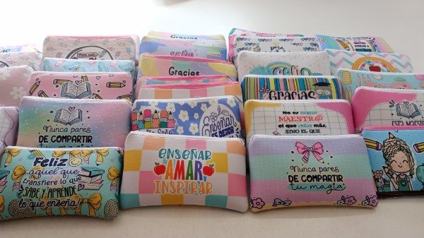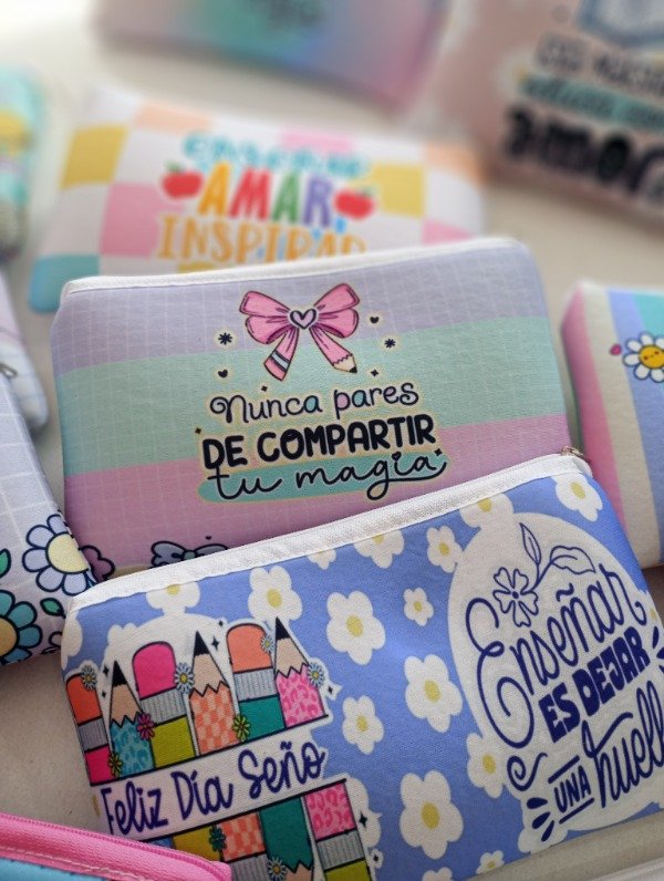 Cartuchera plana Dia del Maestro, hay varios motivos. Una vez efectuada la compra nos indicas el estampado elegido.